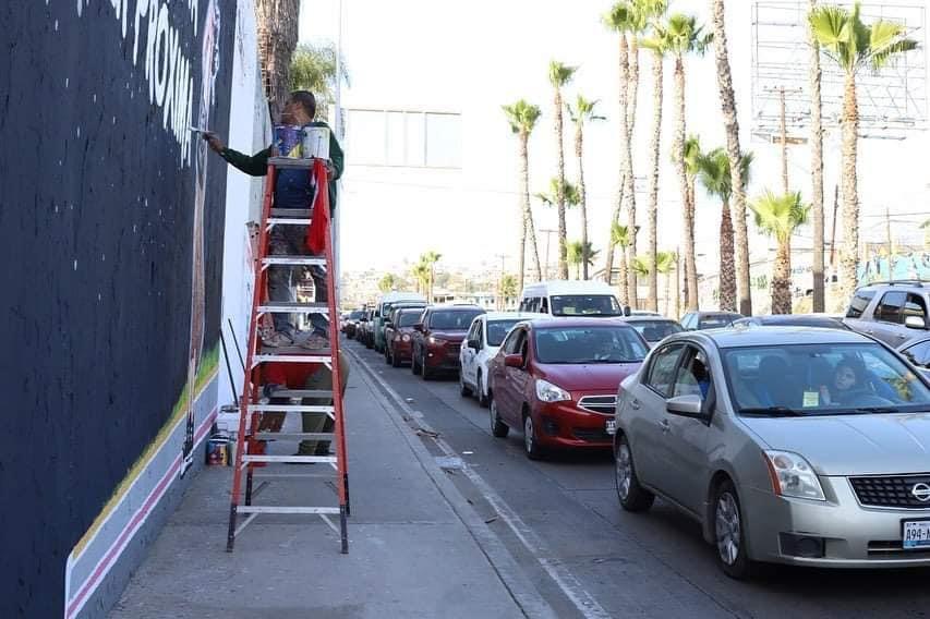 Tijuana (Marcrix Noticias).- Osvando Carmona y Rafael Aguirre, quien tiene 35 años siendo muralista, son dos amigos que decidieron unirse para pintar un mural de 5 metros de altura, en solidaridad con las personas desaparecidas de México, y para hacerlo realidad decidieron plasmar la imagen en caricatura de Debanhi Escobar, joven de tan solo 18 años que desapareció la madrugada del 9 de abril, y que más tarde el 21 de abril autoridades encontraron su cuerpo sin vida dentro de una cisterna de agua en un hotel de Nuevo León.