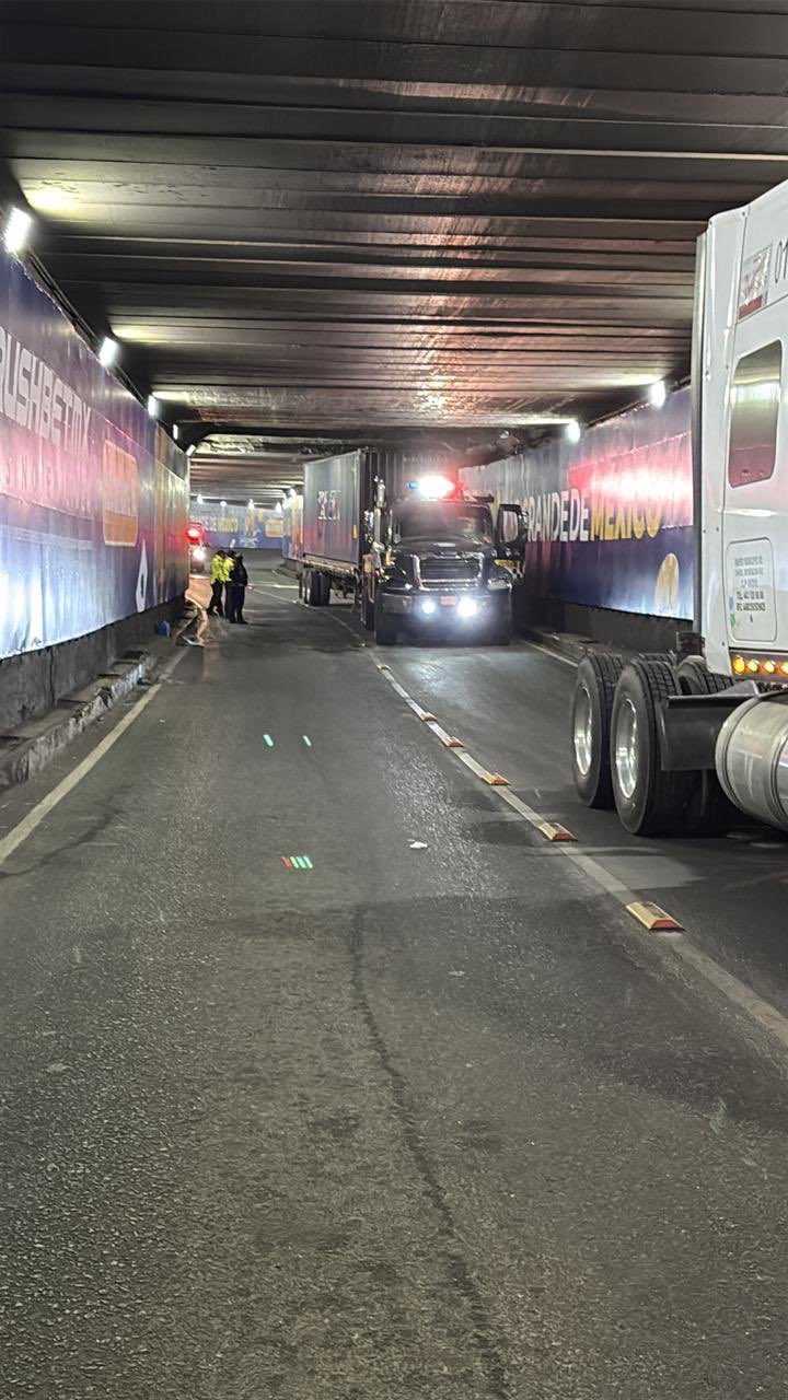 El incidente ocurrió en los carriles centrales, a la altura de avenida Insurgentes, cuando la unidad de carga no logró librar la altura del paso a desnivel y terminó obstruyendo la circulación.