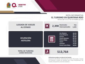 Este desempeño refleja la sólida recuperación del Caribe Mexicano, que sigue siendo el epicentro de las celebraciones y del turismo durante las festividades decembrinas.