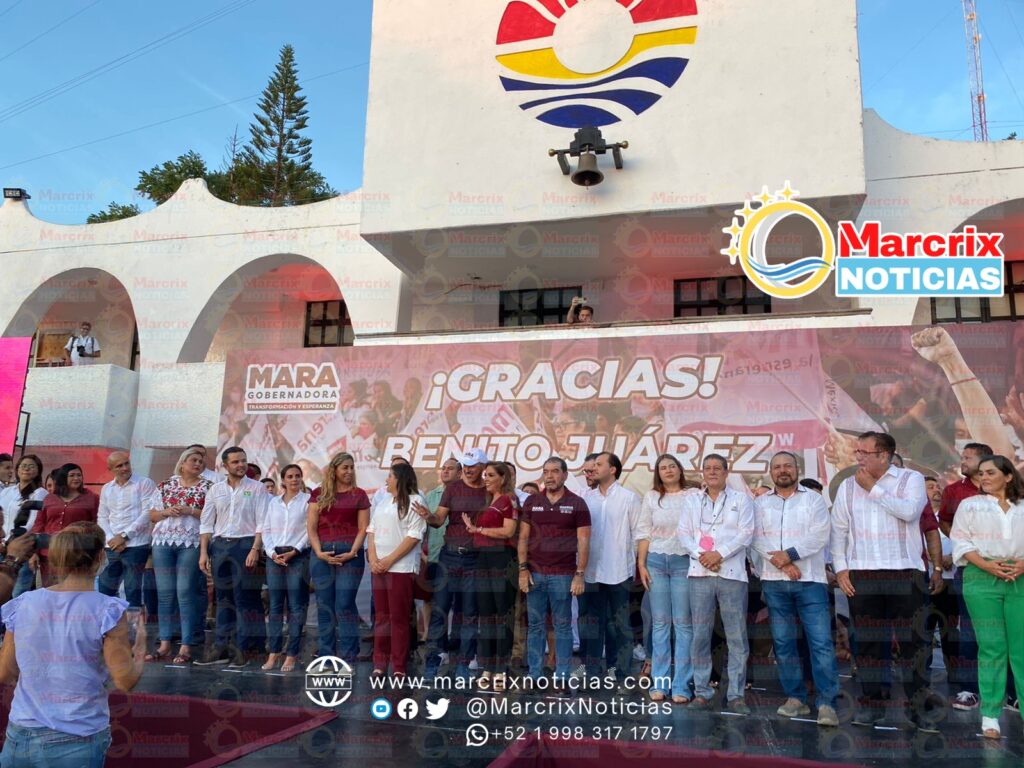 Cancún (Marcrix Noticias).- “Ganamos con casi 41 puntos de ventaja, 41 puntos, vaya trabajo que hicieron”, dijo Mara Lezama, gobernadora electa de Quintana Roo, en el agradecimiento este martes en Cancún por el apoyo recibido en las elecciones pasadas.