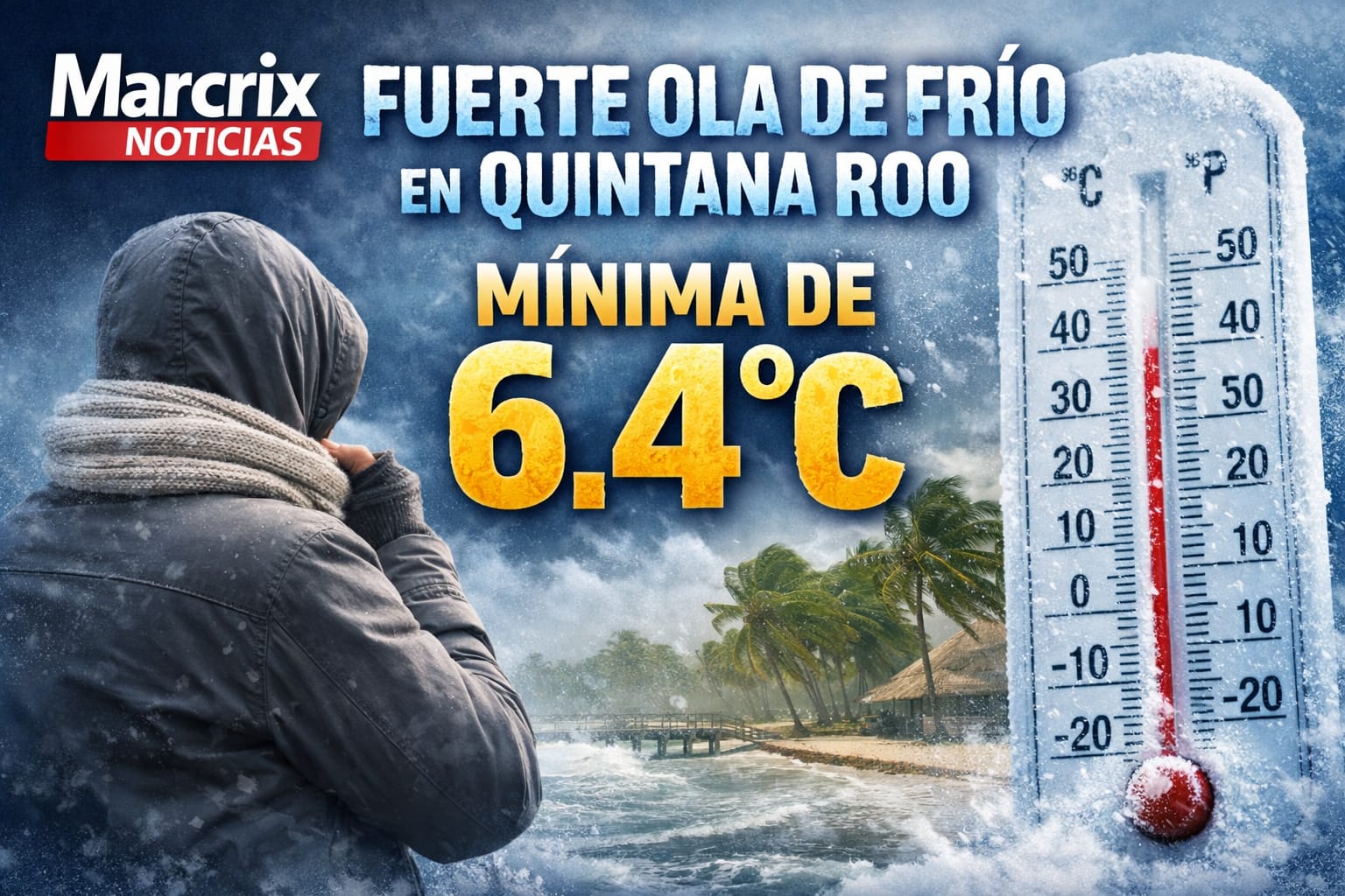 Cancún(Marcrix Noticias).- El Frente Frío 33 provocó un fuerte descenso de temperatura en Quintana Roo, dejando este sábado 7 de febrero de 2026 registros poco comunes para el estado, especialmente en municipios del Centro y Sur.