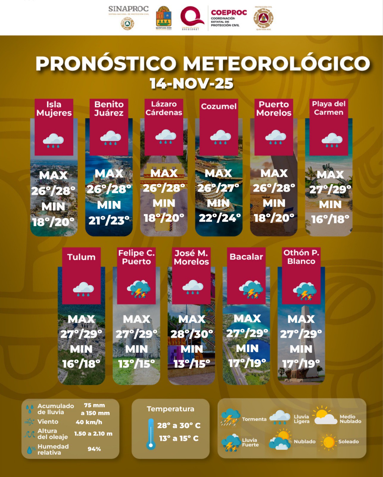 Consultar periódicamente la actualización de los boletines meteorológicos los cuales se publican en las redes sociales y la página web de la Coordinación Estatal de Protección Civil y del Gobierno del Estado de Quintana Roo.
