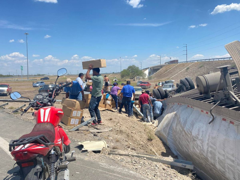 En casi 45 minutos, habitantes de Ciudad Victoria y ejidos cercanos de Tamaulipas vaciaron un tráiler que había volcado con 25 toneladas de camarón macuil de importación y que tenía como destino final algunos restaurantes de la Ciudad de México (CDMX).