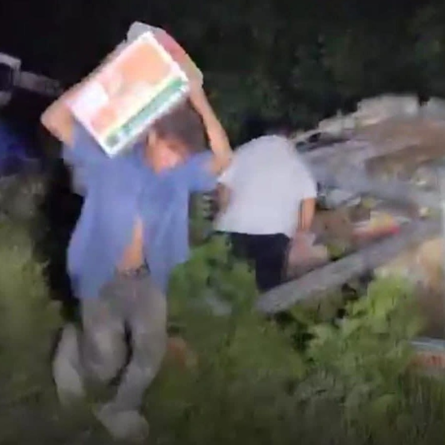 Vecinos que presenciaron el percance aprovecharon la ocasión para iniciar la “rapiña” y empezaron a llevarse parte de la mercancía esparcida.