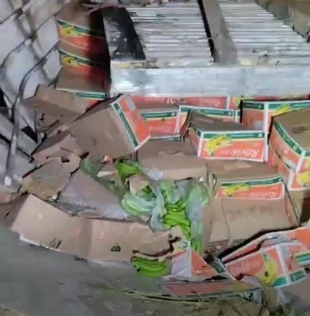 Vecinos y personas que transitaban por la carretera federal Chetumal-Bacalar, sustrajeron los plátanos.