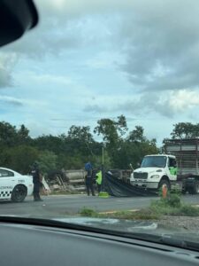 Los hechos ocurrieron a la altura del kilómetro 60 de la carretera federal Mérida a Izamal, cuando el chofer del tráiler al parecer se durmió al volante y después de zigzaguear se volcó.