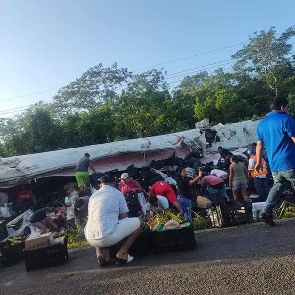 Yucatán (Marcrix Noticias) – Un tráiler cargado con abarrotes volcó en la carretera libre Mérida-Cancún, lo que generó una oleada de rapiña por parte de habitantes de la zona.