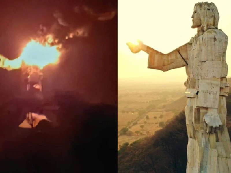 Un rayo provocó un incendio en el Cristo Pescador, escultura de 33 metros de altura ubicada en La Concordia, Chiapas.