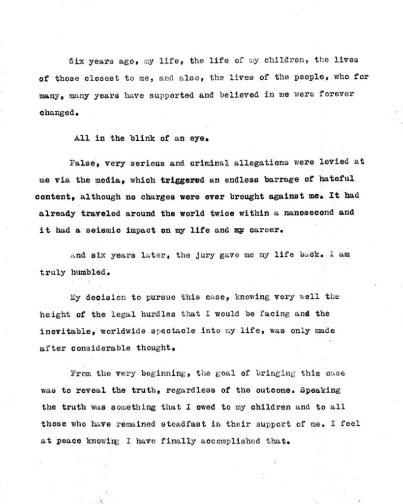 El protagonista de Piratas del Caribe resumió que durante seis años su vida cambió en un abrir y cerrar de ojos y ante “serias acusaciones criminales hechas en su contra en medios de comunicación”.