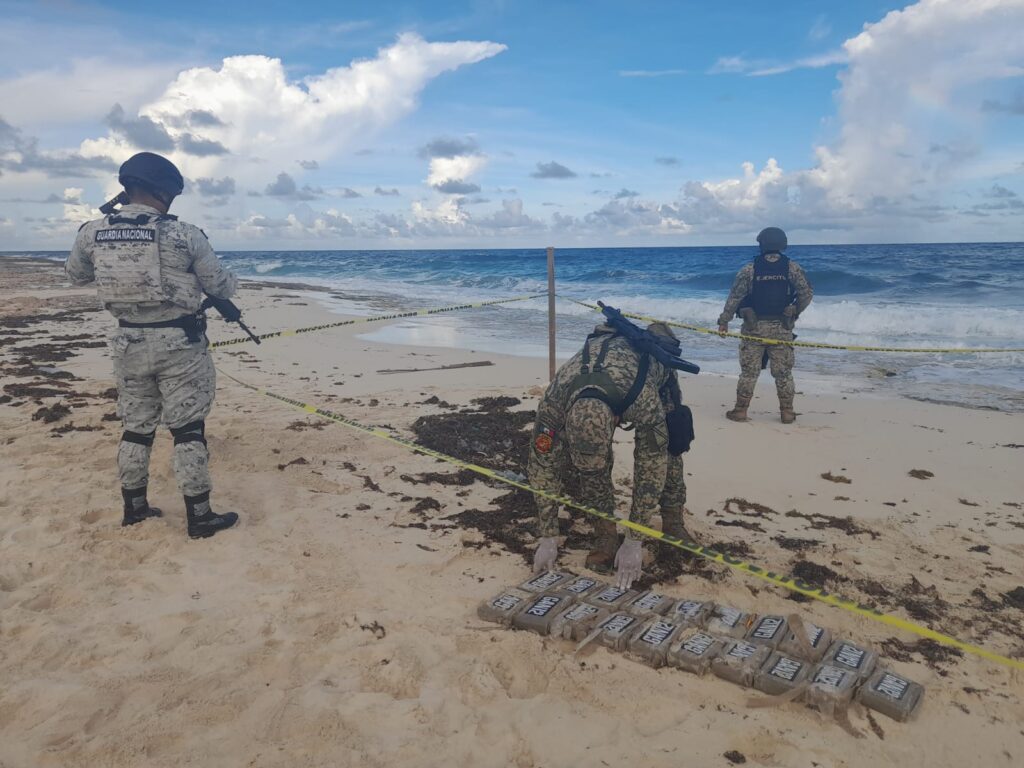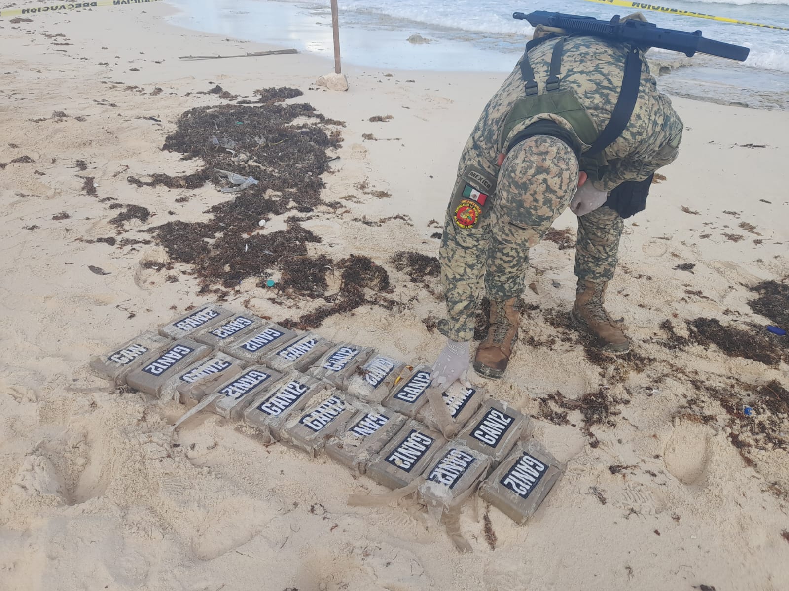 Los hechos ocurrieron en la parte Oriental de la Isla de Cozumel, donde el personal militar y de la G.N., al realizar reconocimientos terrestres a la orilla de la playa, localizaron por hallazgo 19 paquetes de forma rectangular forrados con hule de color negro y cinta color café, con la leyenda “GAN12”.