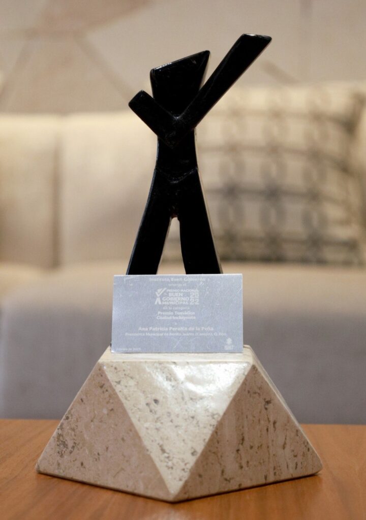 Este premio fue entregado a la Presidenta Municipal, Ana Patricia Peralta, por parte de José Ricardo Velázquez Prudente, director para la Inclusión de las Personas con Discapacidad del Ayuntamiento de Benito Juárez, quien lo recibió el pasado 03 de febrero en la ceremonia de entrega del Premio Nacional al Buen Gobierno Municipal 2022, realizado en la Ciudad de México.