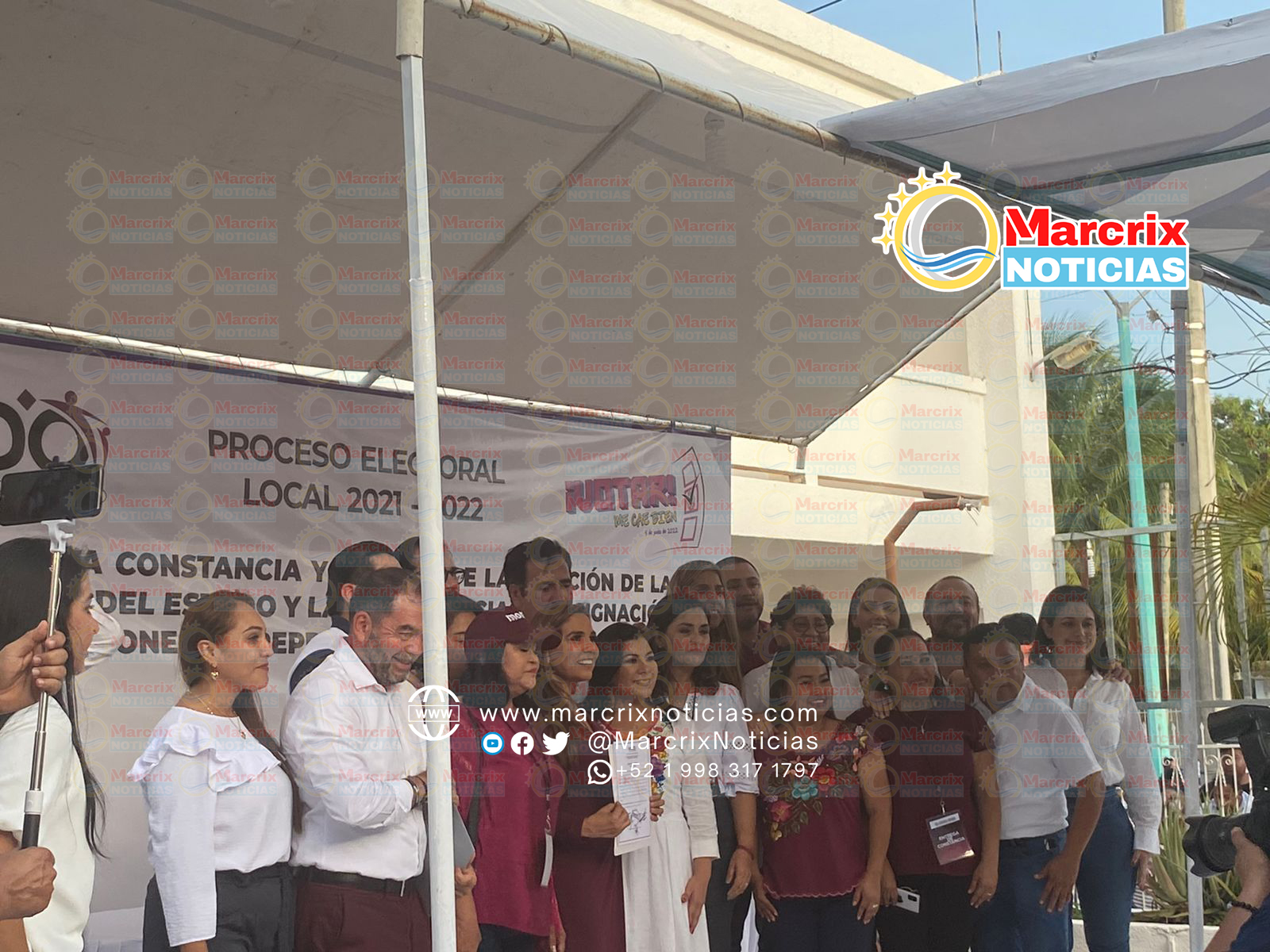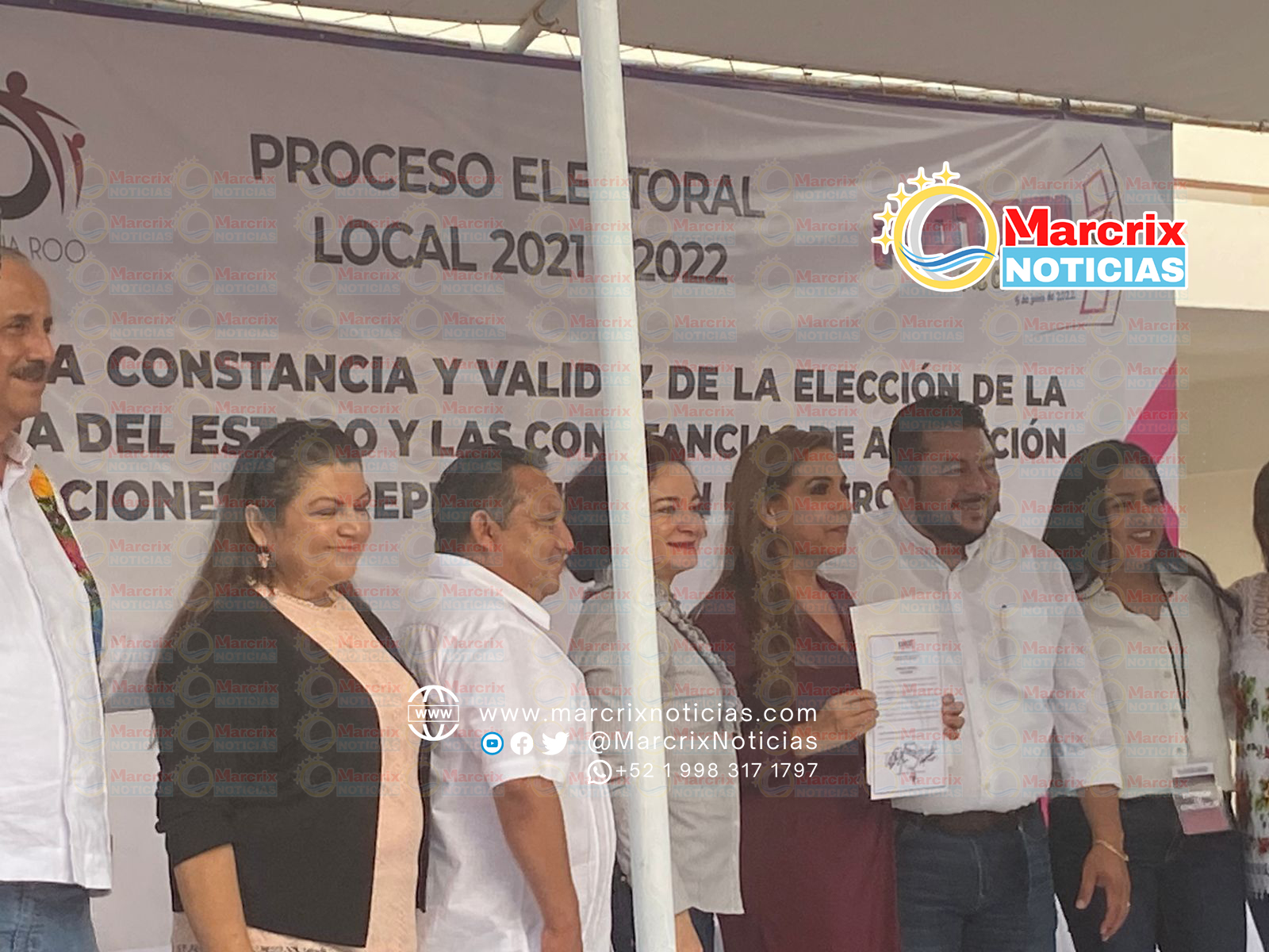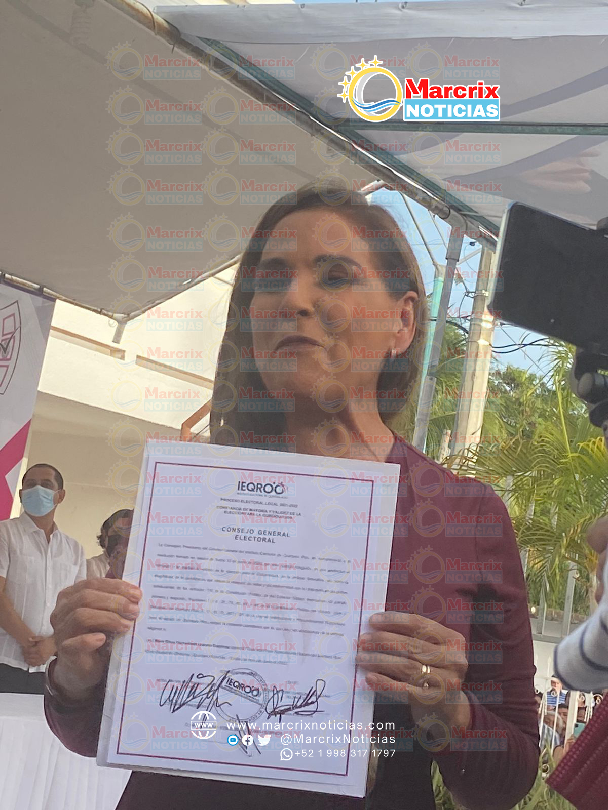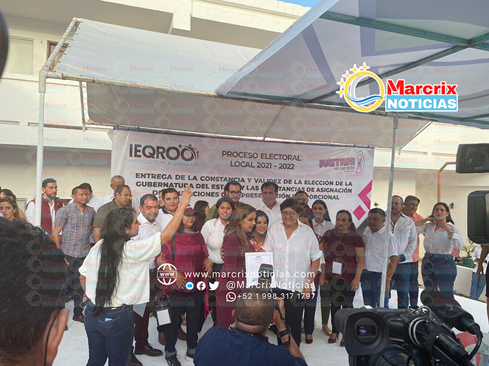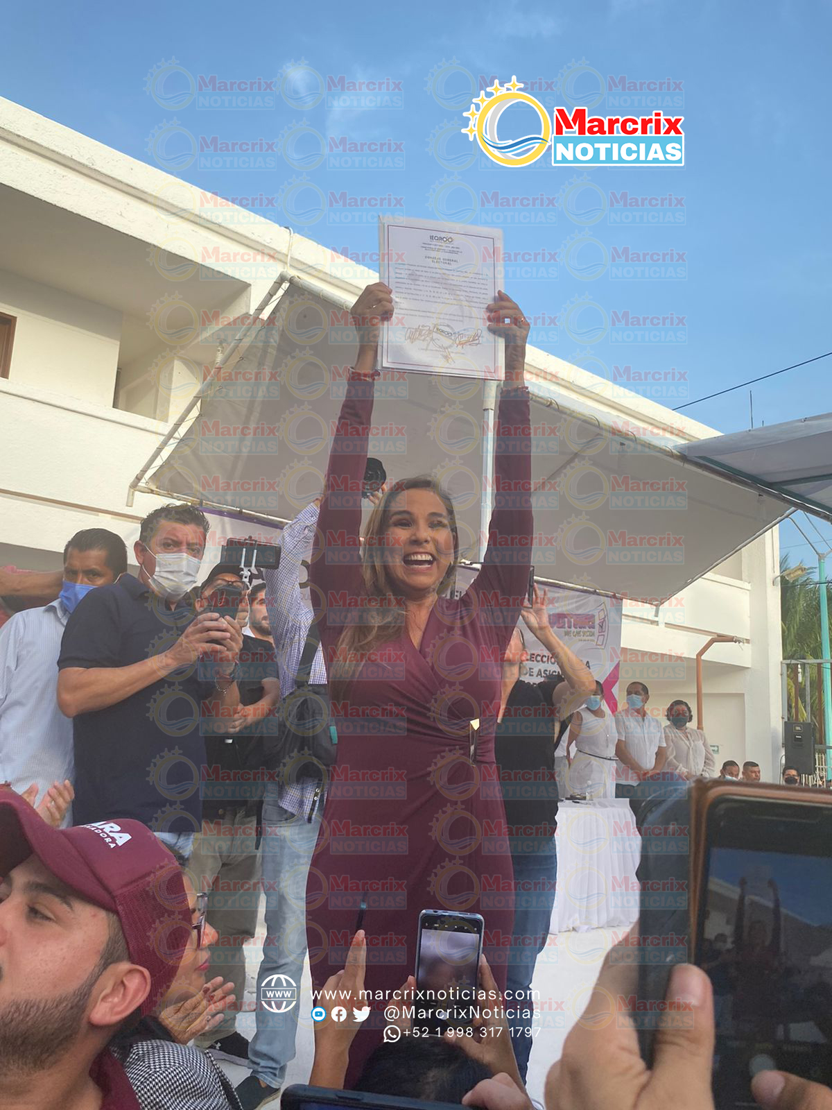 Chetumal (Marcrix Noticias).- Mara Lezama recibió la tarde de hoy la constancia de mayoría como gobernadora electa, luego de que el Consejo General de Instituto Electoral de Quintana Roo (IEQROO), aprobara los resultados de la elección del pasado 5 de junio.