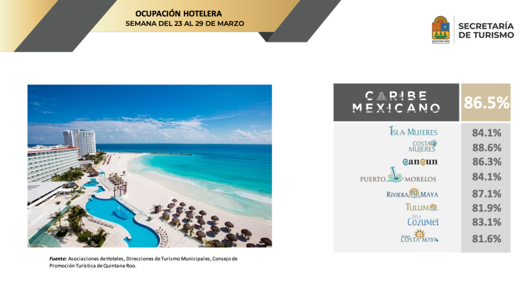 Cancún (Marcrix Noticias).- El estado de Quintana Roo recibió 1.2 millones de turistas durante esta Semana Santa, lo que significó una ocupación promedio arriba del 85%, dieron a conocer autoridades del estado.