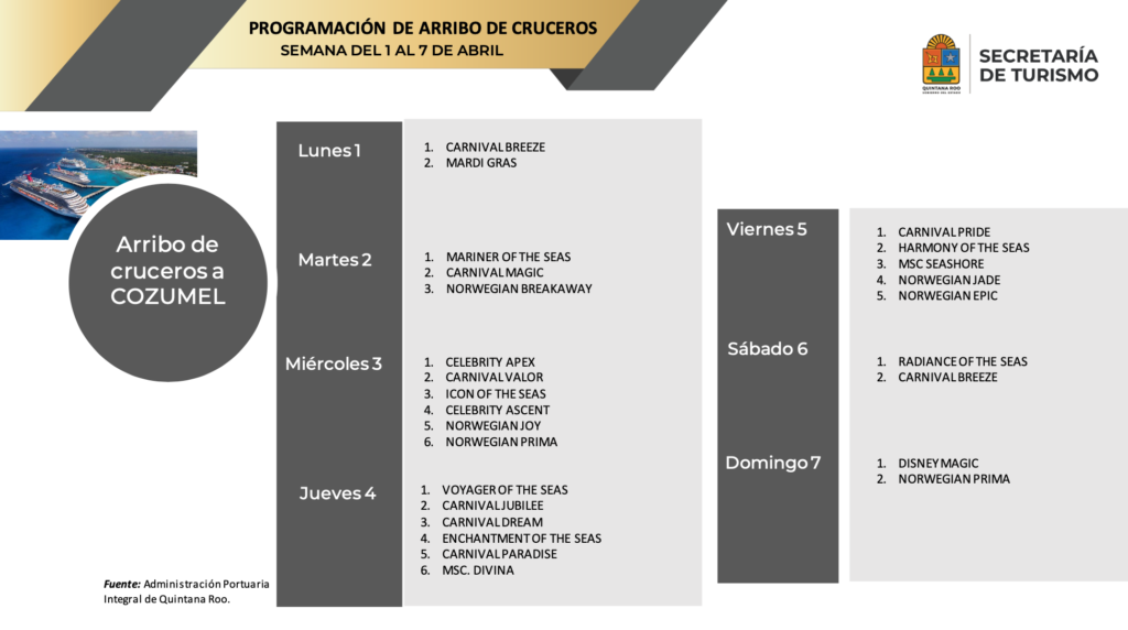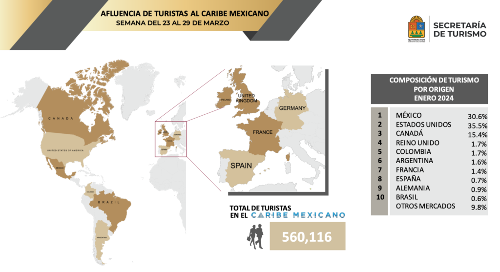 “En esta Semana Santa, proyectamos la llegada de más de 1.2 millones de visitantes a nuestro estado, marcando un incremento del 4.2% en comparación con el año anterior y estableciendo un nuevo récord para nuestro estado”, afirmó Mara Lezama, Gobernadora de Quintana Roo.