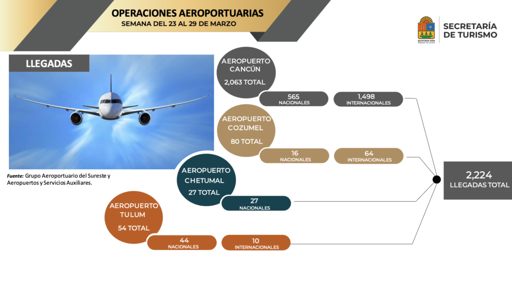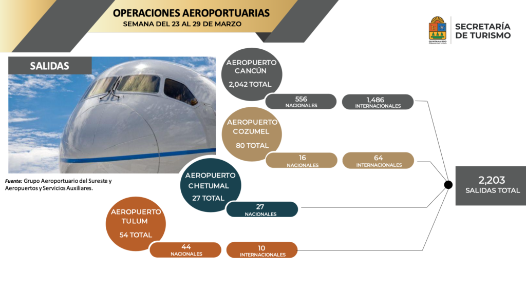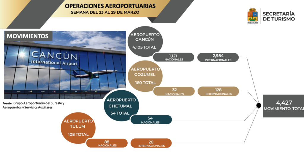 Tan solo este sábado 30 de marzo, se registró el mayor número de operaciones aéreas, en lo que va del año con más 730 en los cuatro aeropuertos de Quintana Roo.