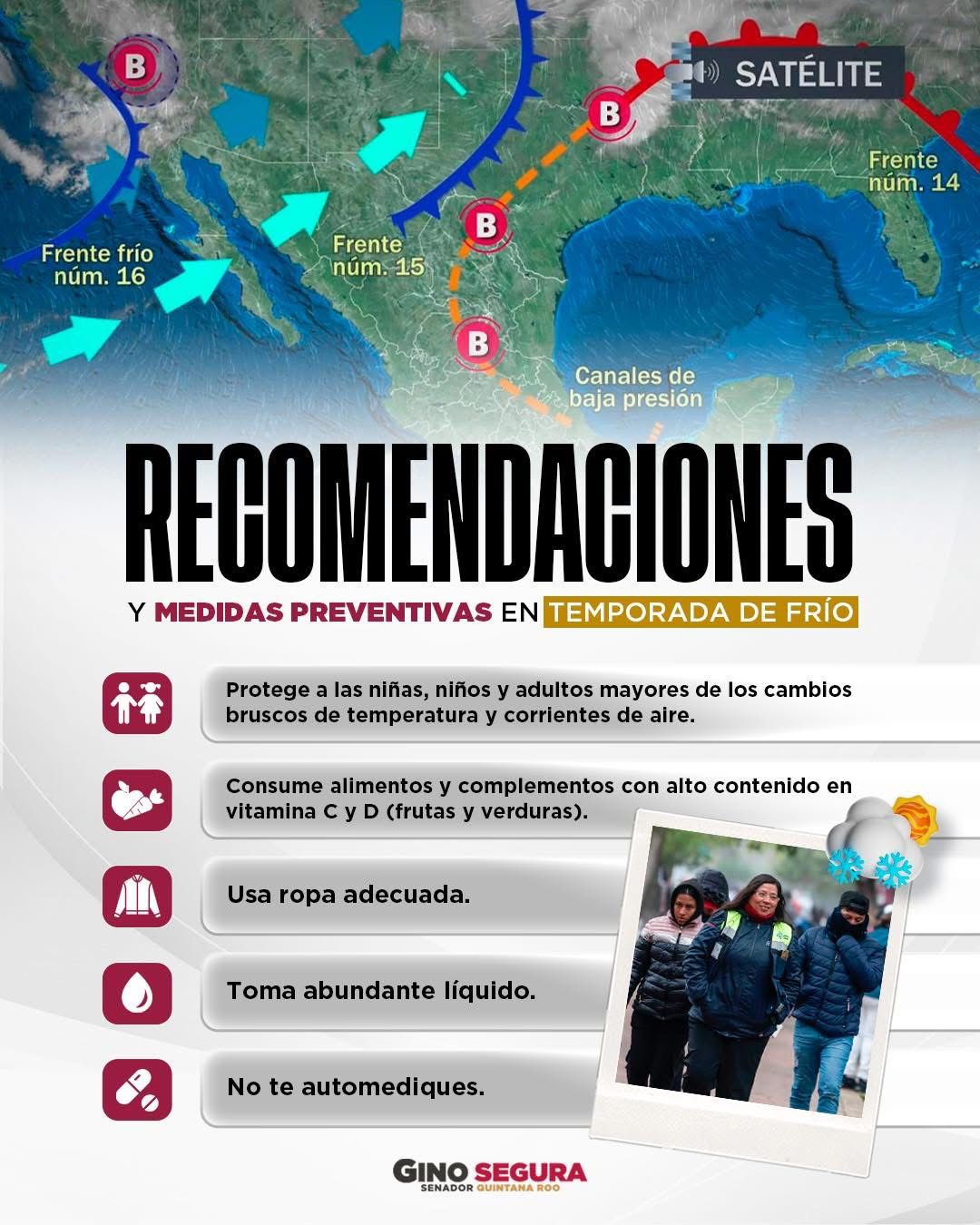 Ante el avance de diversos frentes fríos y la presencia de sistemas de baja presión en gran parte del país, autoridades difundieron una serie de recomendaciones por temporada de frío con el objetivo de reducir riesgos a la salud, principalmente en niñas, niños y adultos mayores, considerados los sectores más vulnerables.
