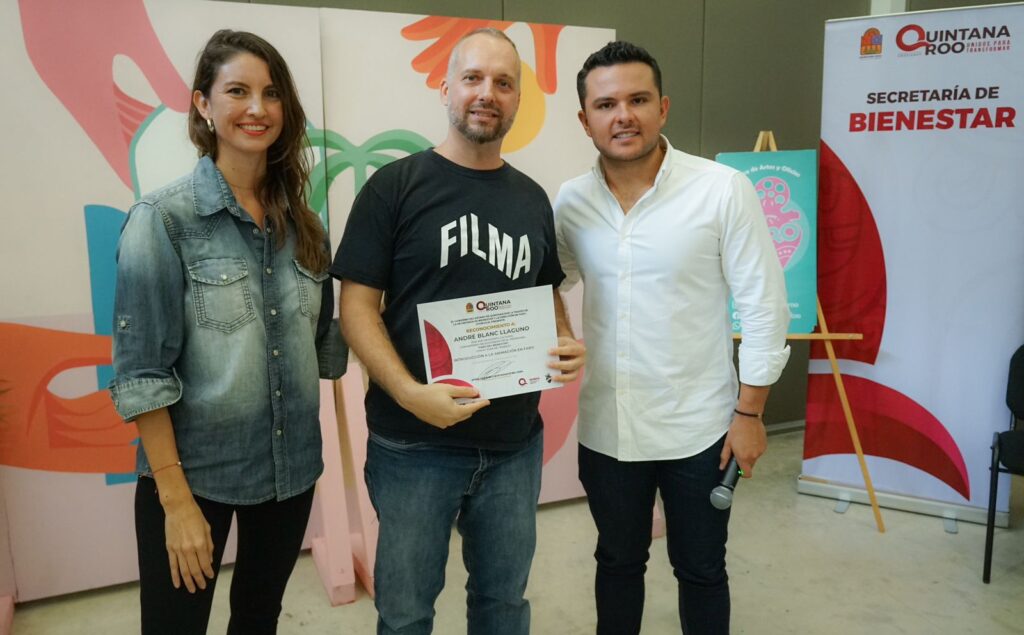 Entrega el Secretario de Bienestar, Pablo Bustamante, reconocimientos a los proyectos enfocados a impulsar el arte, la cultura y la educación para reconstruir el tejido social y transformar la vida de las familias cancunenses y de la comunidad en Villas Otoch Paraíso, como es la visión y el compromiso de la Gobernadora Mara Lezama