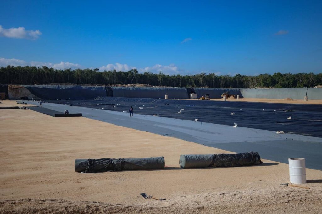 De la misma forma, en la explicación técnica se puntualizó que de acuerdo con la normativa ambiental se pide proteger el suelo con una geomembrana, recubrimiento que impermeabiliza el suelo y no haya contacto con la superficie, por lo que para garantizar su cumplimiento, en esta celda CIPRES no solamente se colocó una geomembrana, sino también dos capas de geotextil, a lo que sigue una capa de cementante de alrededor de 30 centímetros y se compacta.