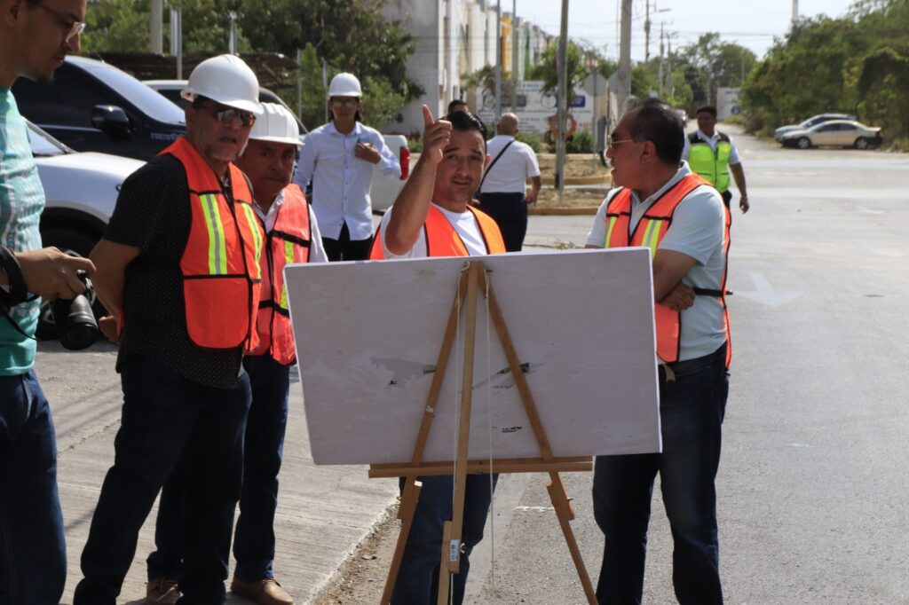 • En el primer punto, el Encargado de Despacho de la Presidencia Municipal constató el deterioro de la avenida Galaxias del Sol, entre las avenidas Chac Mool y Madero, donde se rehabilitará la carpeta asfáltica, y hará la construcción de pozos de absorción, aplicación de pintura en señalización horizontal e instalación de señaléticas.