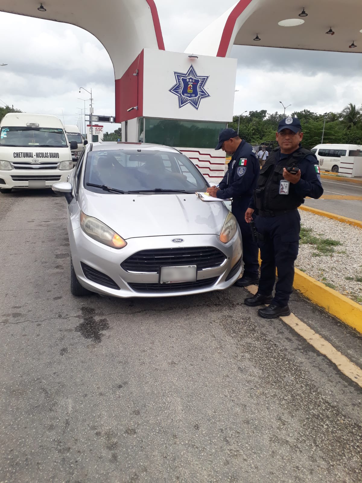El vehículo con reporte de robo se recuperó sobre el módulo de control de la carretera federal Chetumal-Bacalar.
