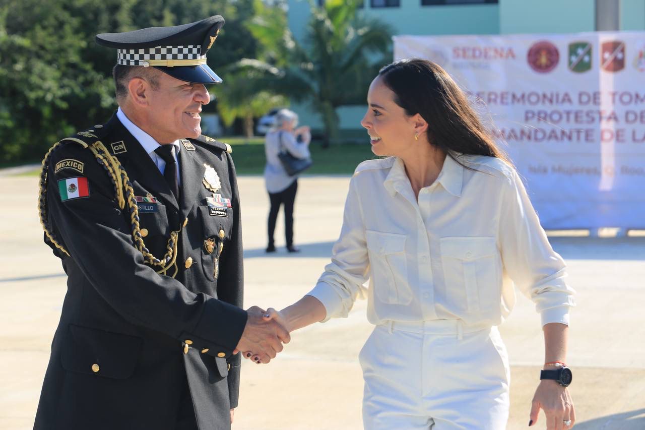 Isla Mujeres, Q.R., (MARCRIX Noticias), a 19 de febrero de 2023.- La Presidenta Municipal de Benito Juárez, Ana Patricia Peralta, atestiguó la protesta al cargo así como toma de posesión y protesta de bandera del Comisario General Brigadier D. E. M. Israel Noé Castillo Pérez, como comandante de la 10ª Brigada de la Policía Militar y coordinador estatal de la Guardia Nacional en Quintana Roo.
