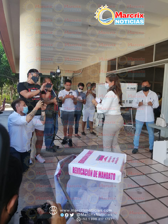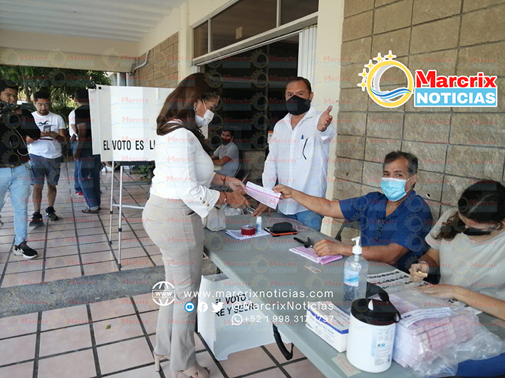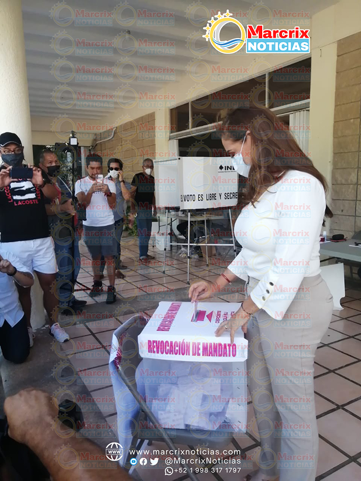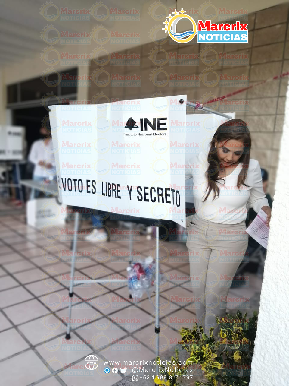 Cancún (Marcrix Noticias).- Minutos antes de las 4 de la tarde, la candidata a la gubernatura de Quintana Roo de la coalición Juntos Hacemos Historia, Mara Lezama acudió a las instalaciones de la Casa de la Cultura a emitir su voto para refrendar su confianza al presidente Andrés Manuel López Obrador.