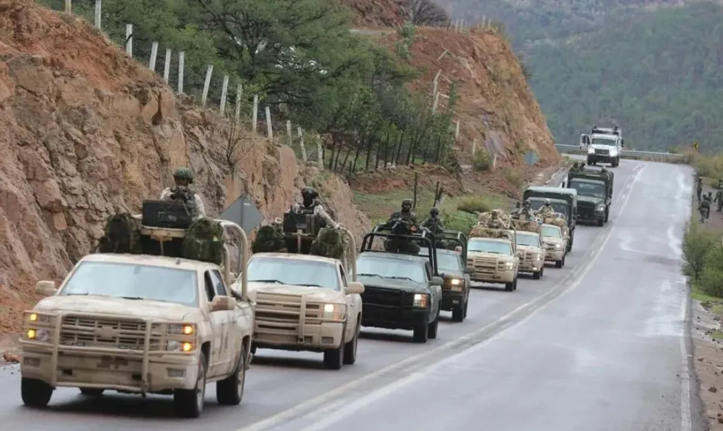 Cientos de militares llegaron en caravana a Cerocahui, apoyados con armas de alto poder y escoltados por algunas unidades de la Guardia Nacional.