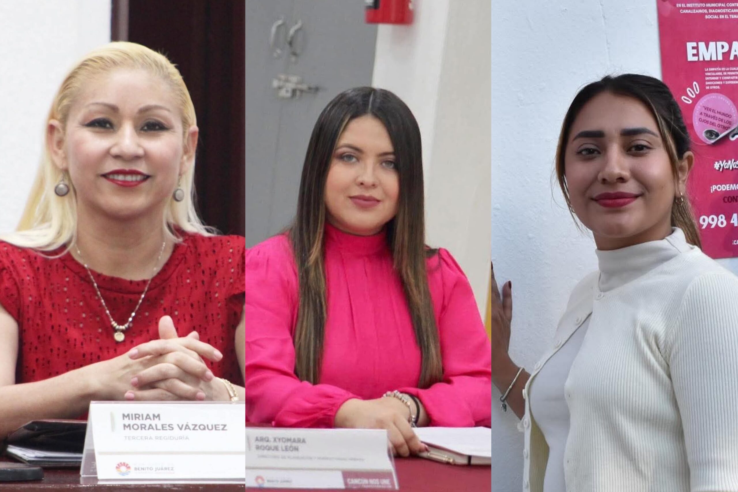 Miriam Morales Vázquez; Ivette Lorena Manjarrez Cardona, hija de la ex alcaldesa interina Lourdes Cardona; y Silvana Guadalupe Córdova Uicab, todas integrantes de la bancada morenista, manifestaron abiertamente su oposición a la desincorporación y venta de los predios ubicados en el kilómetro 13 del Bulevar Kukulcán.