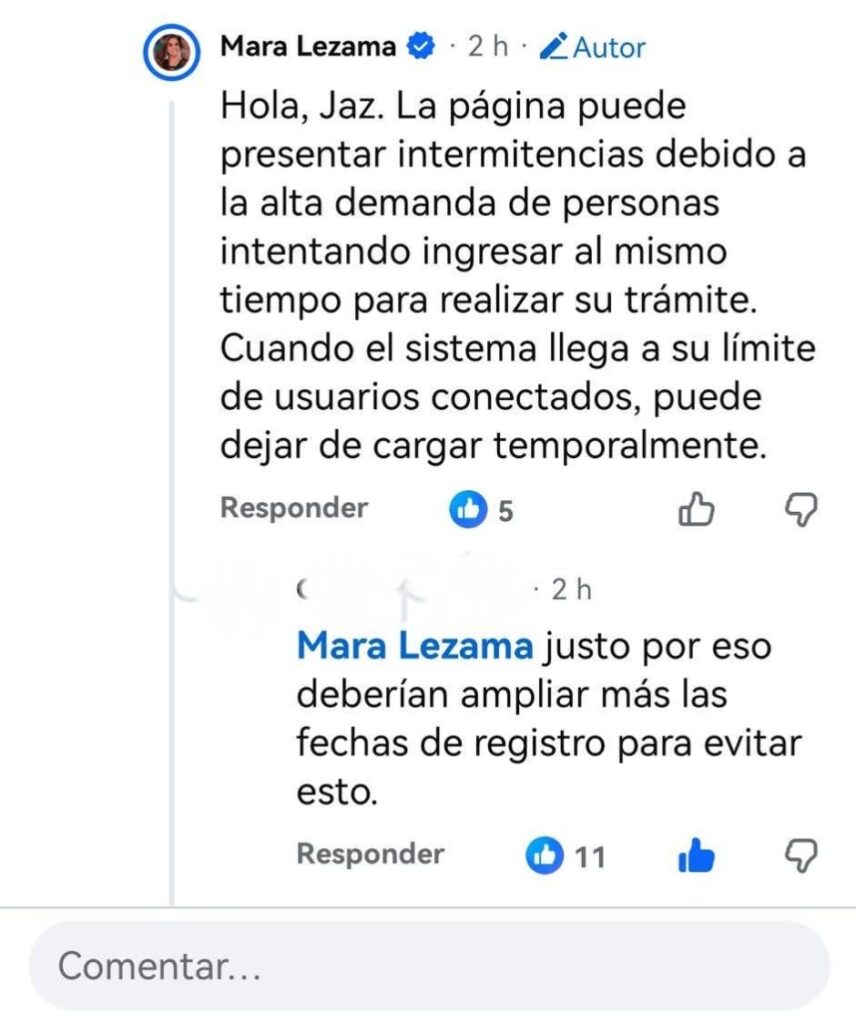 Tras las quejas, autoridades emitieron un aviso para informar que el sistema presentaba intermitencias, por lo que habilitaron un enlace alterno para que la ciudadanía pudiera continuar o iniciar su registro sin contratiempos.