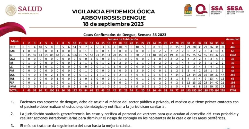 Detalló que “entre Solidaridad, Othón P. Blanco y Benito Juárez, tenemos el 80% de los casos”.