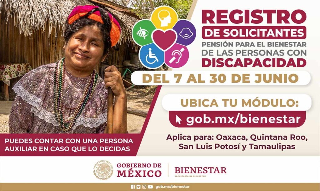 Para conocer la Pensión para el Bienestar de las Personas con Discapacidad y el módulo más cercano a tu localidad, consulta la página oficial de la Secretaría de Bienestar: gob.mx/bienestar