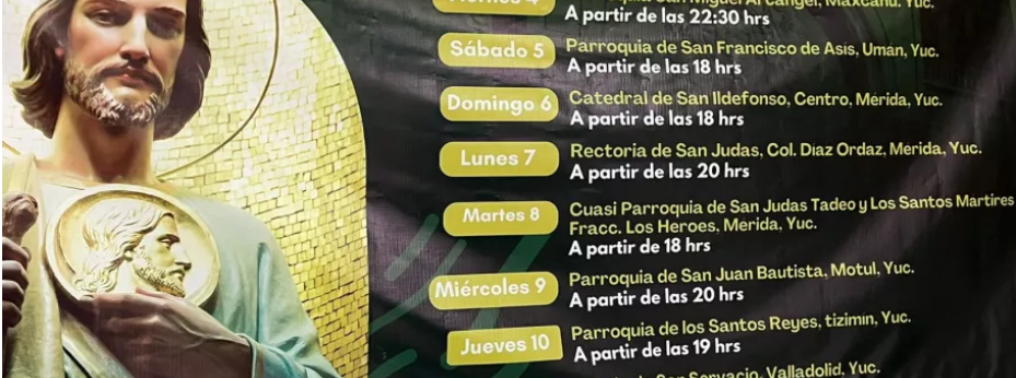 En Mérida, su recorrido incluirá la Catedral de San Idelfonso, la rectoría de San Judas Tadeo en la colonia Díaz Ordaz, y la parroquia San Judas Tadeo en Los Héroes.
