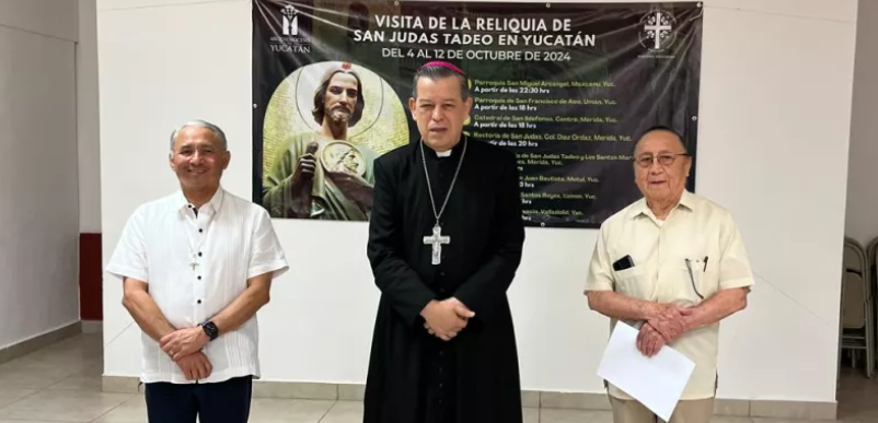 Yucatán (Marcrix Noticias).- La reliquia de San Judas Tadeo, visitará varias iglesias de Yucatán, donde se espera que congregue a miles de fieles. Este objeto sagrado, que contiene un fragmento de hueso atribuido al apóstol, es representado en forma de mano con tres dedos apuntando hacia arriba, en señal de bendición.