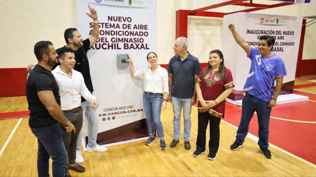 Cancún, Q. R., (MARCRIX Noticias), a 05 de enero de 2024.- En esta primer semana del 2024 y como un compromiso cumplido para los deportistas cancunenses, autoridades del Ayuntamiento de Benito Juárez encendieron el nuevo sistema de aire acondicionado del gimnasio “Kuchil Baxal”, que fue renovado para beneficio directo de 100 mil atletas y asistentes a los eventos programados en el año.