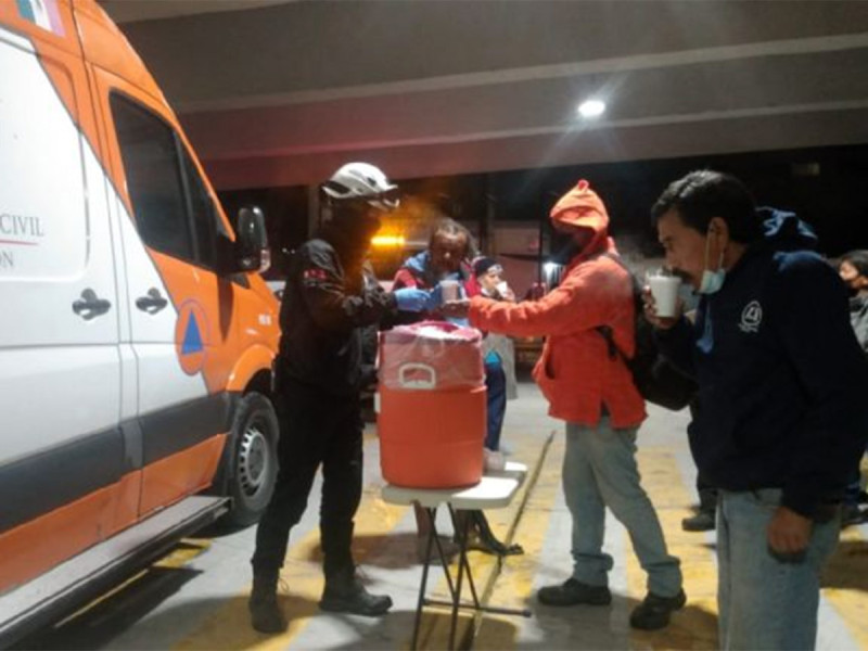 La dependencia informó que en total se ha brindado asistencia a mil 100 personas, a quienes se les han repartido 820 litros de chocolate caliente y mil 200 piezas de pan, además del reparto de mil 600 cobijas.