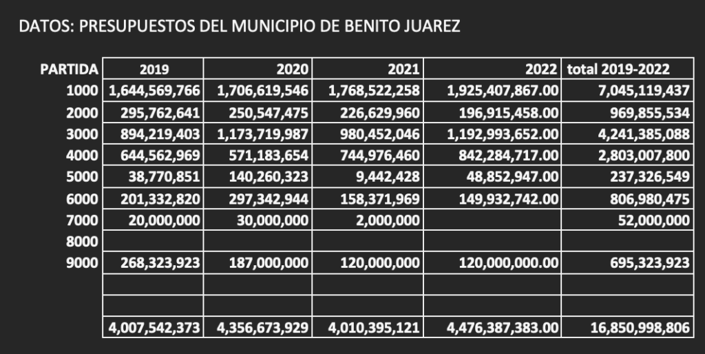 1.- No hay una transparencia sobre el destino de estos sueldos y gastos, ejemplo: es una incógnita saber con precisión cuantos funcionarios y empleados tiene el municipio, una información publicada en el 2018 señalaba que tenía contratados 7,095 personas de los cuales 2,404 eran sindicalizados, 2,895 personal de confianza y 1,796 eventuales.