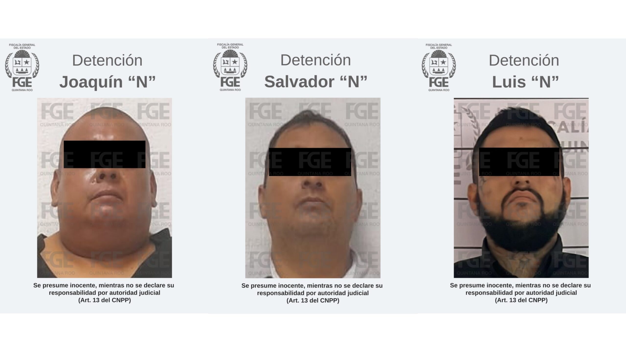 Durante las diligencias fueron detenidos tres hombres identificados como Joaquín “N”, Salvador “N” y Luis “N”, a quienes se les encontró en posesión de bolsas con polvo blanco, al parecer cocaína, por lo que quedaron a disposición del Ministerio Público.