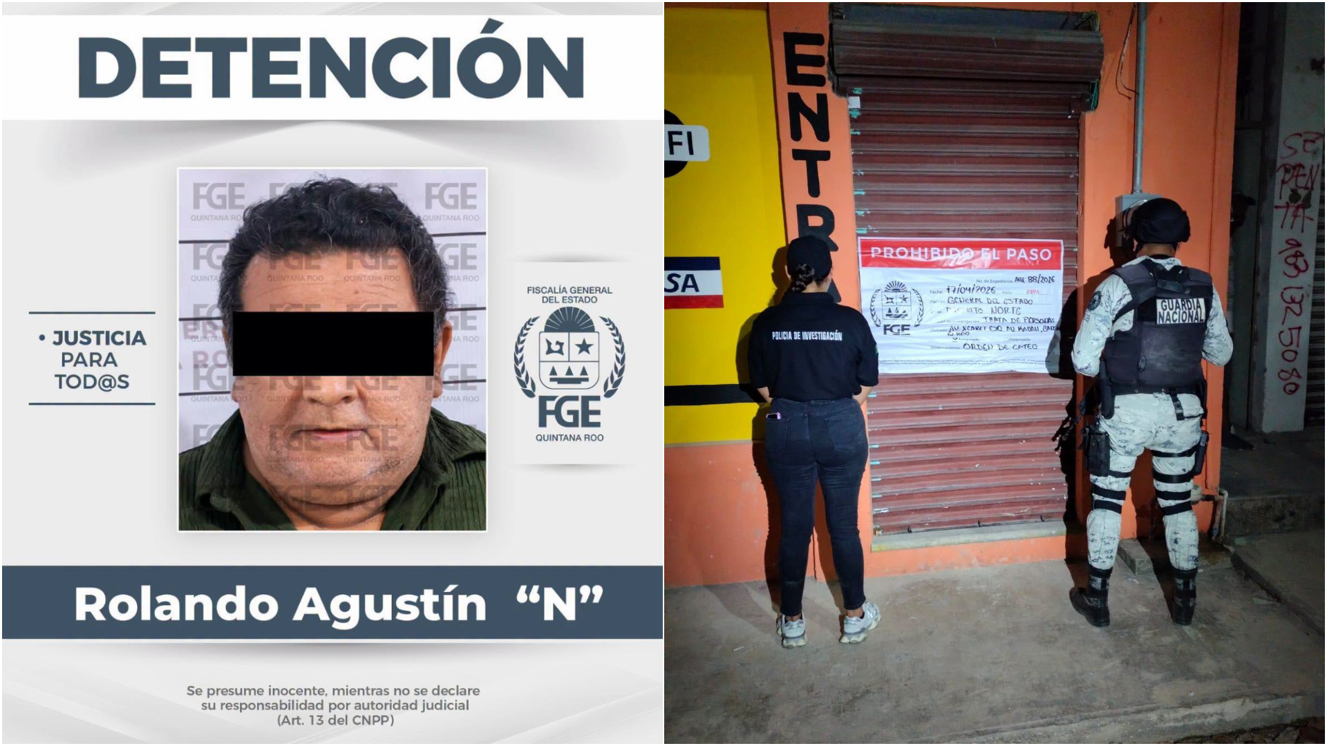En el sitio fue detenido Rolando Agustín N, identificado como responsable del lugar, quien fue puesto a disposición del Ministerio Público por su probable participación en el delito de trata de personas en su modalidad de prostitución ajena.
