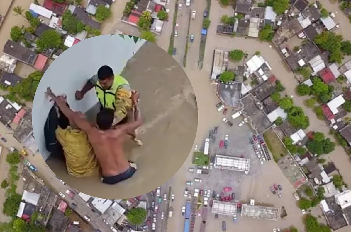 En un video difundido en redes sociales, se observa el momento en que el abuelito camina con dificultad entre el agua, mientras sostiene a uno de sus perros y es ayudado por un agente de la Guardia Nacional y un vecino.