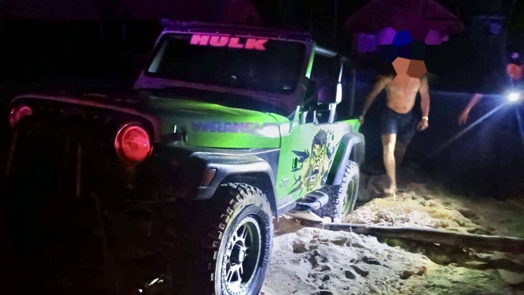 De acuerdo con el reporte oficial, alrededor de las 21:00 horas se recibió un aviso sobre un Jeep atascado con dos personas a bordo. Ante esta situación, elementos de la Dirección de Seguridad Pública, en coordinación con la Policía Turística, se movilizaron al lugar.