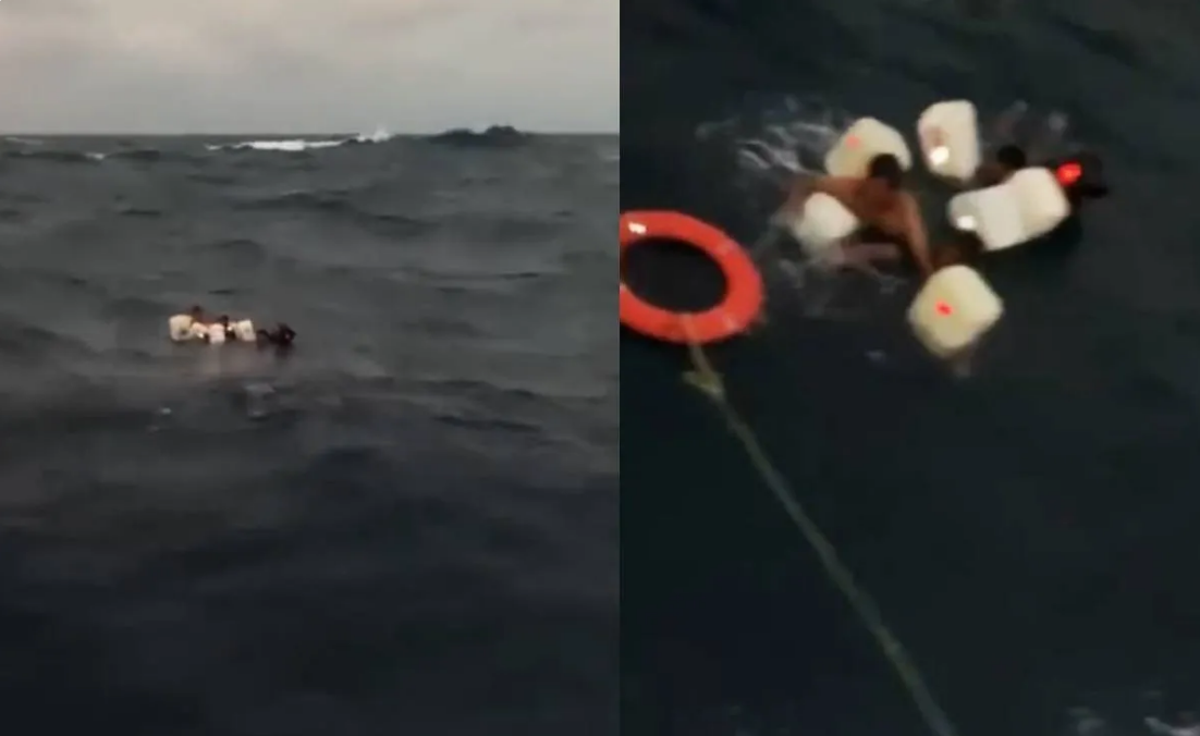 Este dramático rescate fue grabado en un video donde se puede observar a los náufragos flotando en el mar, aferrándose a bidones mientras sus compañeros de la embarcación “Propemex 14” se acercaban a socorrerlos.