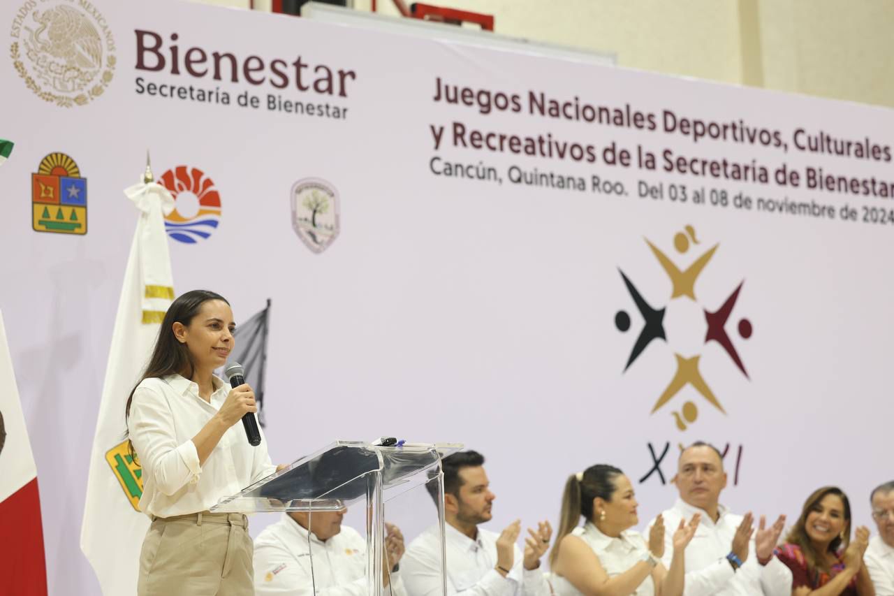 Cancún, Q. R., (MARCRIX Noticias), a 04 de noviembre de 2024.- La Presidenta Municipal, Ana Paty Peralta, participó en la inauguración de los Juegos Nacionales Deportivos, Culturales y Recreativos de los Trabajadores de la Secretaría de Bienestar (SEBIEN), encabezada gobernadora Mara Lezama, para dar inicio a las competencias que se realizarán hasta el 8 de noviembre en Cancún, en las que participarán casi mil colaboradores de las 32 entidades del país.