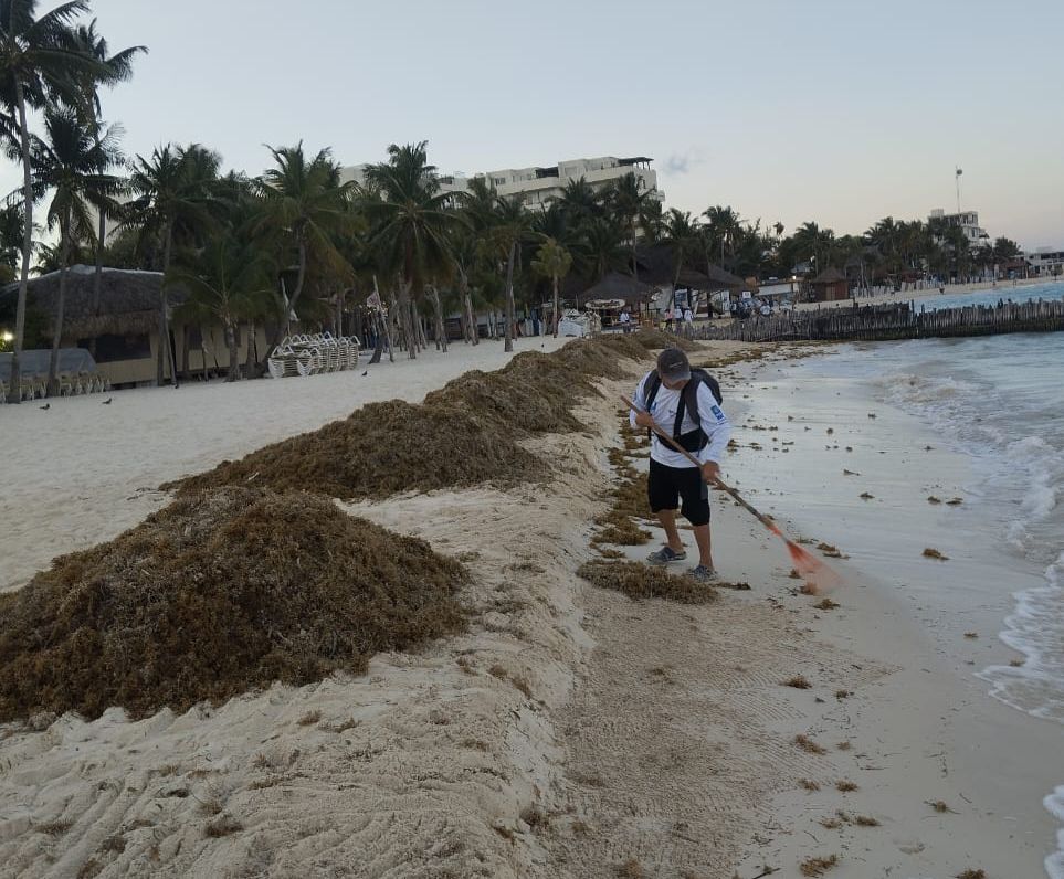Las labores de limpieza continúan de forma preventiva ante la posibilidad de nuevos recales, especialmente durante esta temporada en la que el arribo de sargazo se ha vuelto irregular y en algunos casos inesperado.