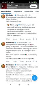 Ciudad de México(Marcrix Noticias).- Simón Levy, ex subsecretario de Planeación Turística, provocó un intenso debate en redes sociales tras publicar dos mensajes en los que asegura que el expresidente Andrés Manuel López Obrador (AMLO) está siendo investigado judicialmente en Estados Unidos.