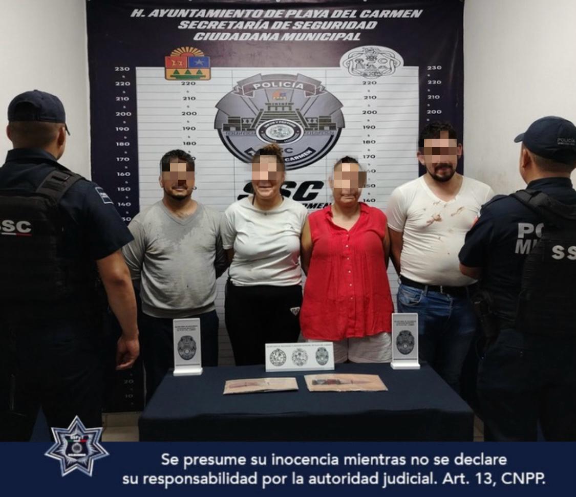La Secretaría de Seguridad Ciudadana de Playa del Carmen detuvo a cuatro personas, entre ellas una mujer acusada de herir con cuchillo a un hombre durante una riña en el fraccionamiento Real Bilbao.