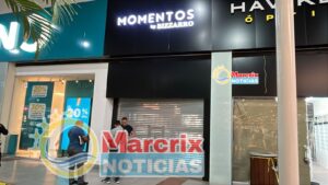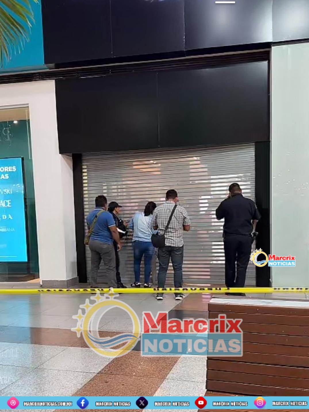 Cancún. ( Marcrix Noticias).- En menos de quince días, la cadena de joyería Bizzarro en Plaza Las Américas sufrió nuevamente un hecho violento. De acuerdo con reportes preliminares, los sujetos consiguieron romper las vitrinas con marros, llevarse mercancía fina y luego escapar con rumbo a la avenida Nichupté.