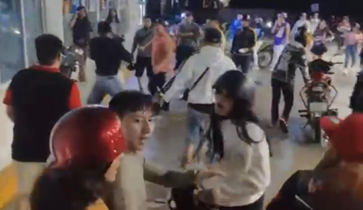 Cancún (Marcrix Noticias).- Una batalla campal protagonizaron un grupo de motociclistas la madrugada de hoy en el estacionamiento del Gomart, ubicado en Puerto Cancún.