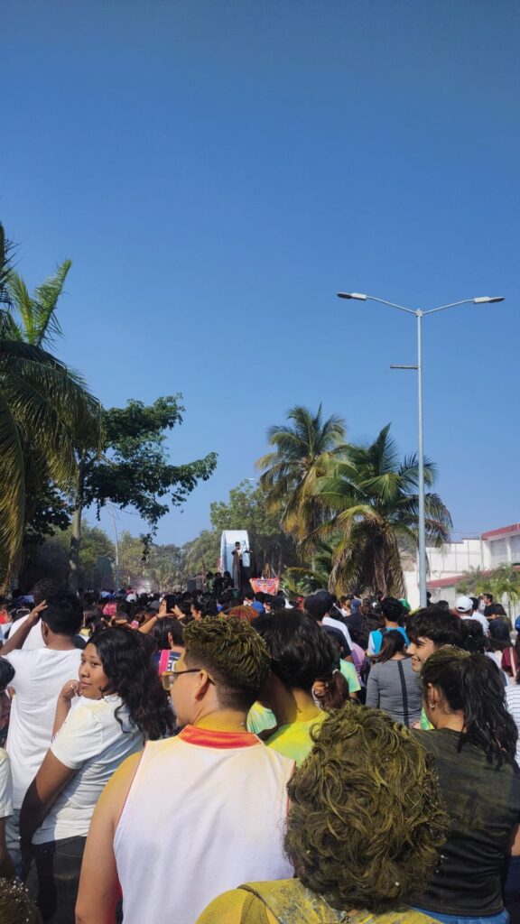 Los animadores de este evento pedían porras para la presidenta municipal de Othón P Blanco, Yensunni Martínez, pero solo logró ser abucheada en repetidas ocasiones, pese a las más de 200 playeras que tiró, conmemorativas de este Carnaval 2024.