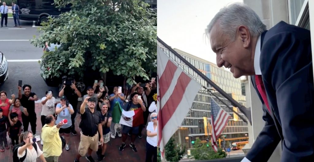 Ciudad de México(Marcrix Noticias).- El presidente de México, Andrés Manuel López Obrador, saludó desde la ventana de su hotel en Washington, Estados Unidos, a los paisanos que acudieron a saludarlo una vez que arribó a la capital estadunidense.
