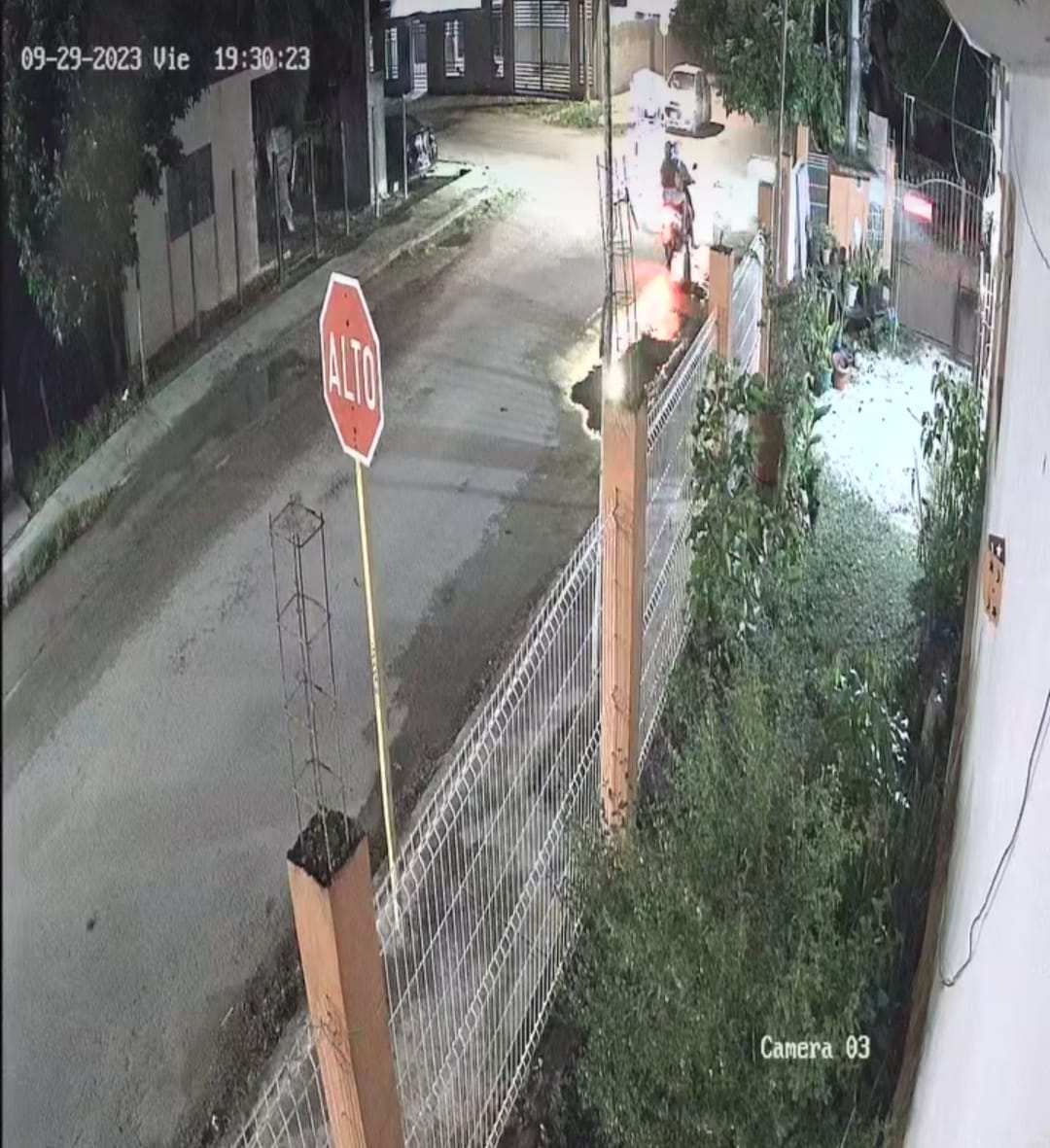 Como se muestra en las imágenes captadas por una cámara de seguridad, el conductor de un vehículo rozó el triciclo pensando, quizás, que su vialidad era prioridad.